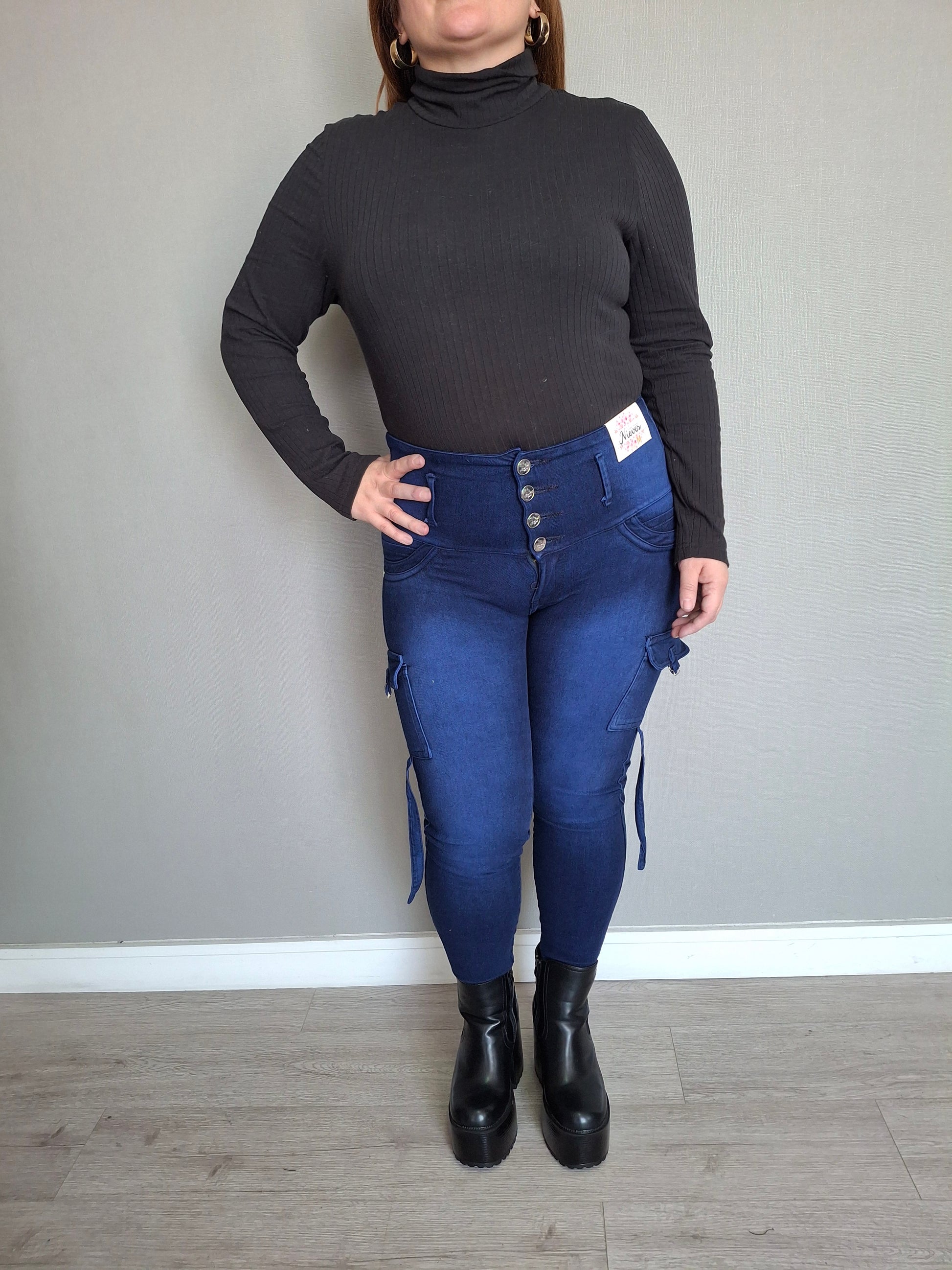 Jeans fajero cargo pitillo talla M (38 42)azul focalizado